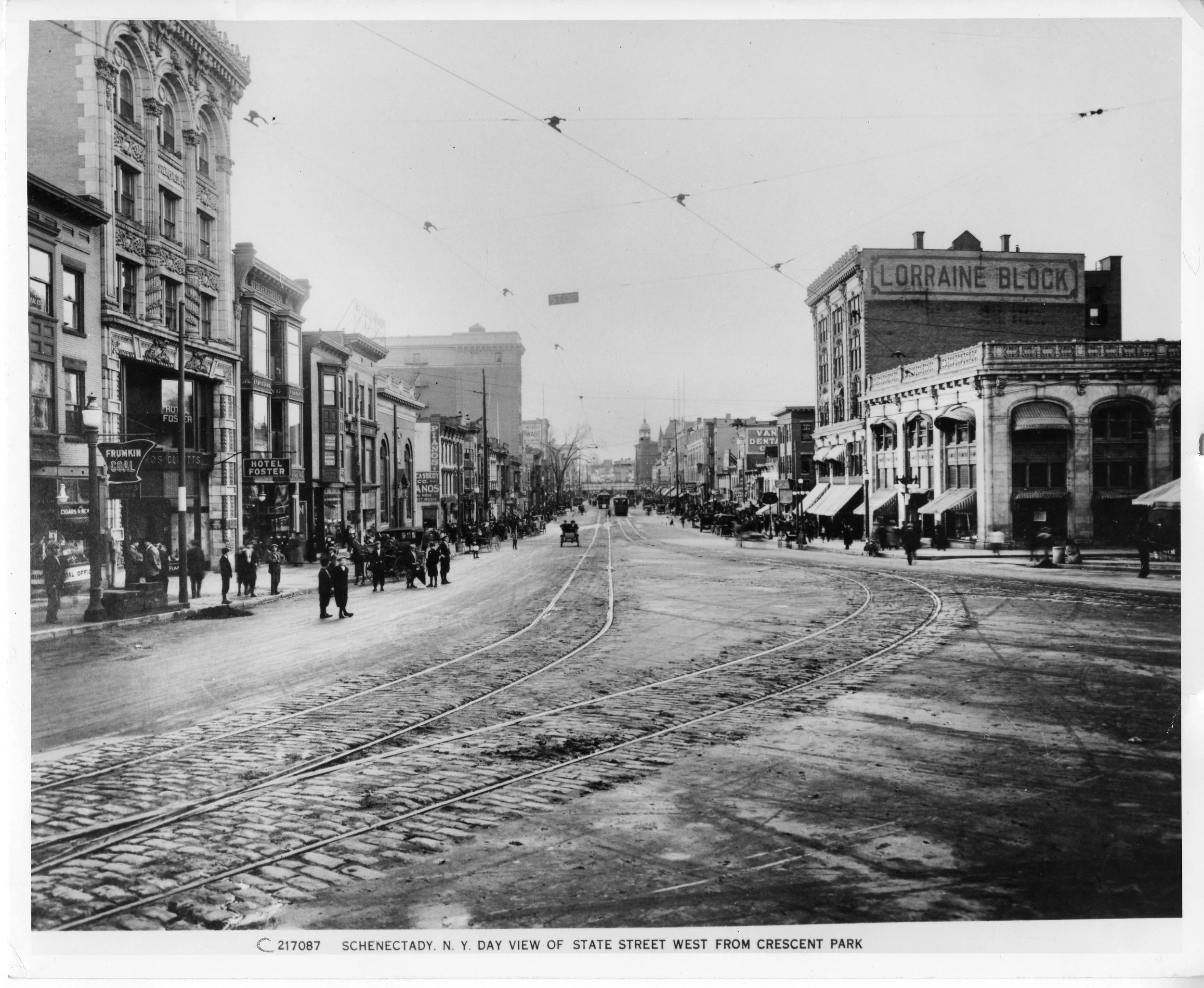 Phil Bradley, born on March 28, 1886, in Albany, New York, was the son of Charles M. Bradley, a white medical student in Albany, New York, and an unknown Black woman.4 Charles Bradley married Mary Marx, a white woman from Schenectady, in January 1886 and moved to Chicago to practice medicine. Charles had two sons, Nathan and Frederick, in Chicago, who had no contact with their half-brother, as Charles and Mary left Philip with Mary’s father, Peter Marx Sr., in Schenectady. Peter, a German broom maker, lived with his wife, Elizabeth. The couple raised six children in Schenectady. By 1886, all of their sons were married and living independently. When Mary married Charles Bradley, Peter, in his mid-50s, agreed to allow Phil Bradley to live with him and Elizabeth on Albany Street in Schenectady.5 He worked at the Schenectady Whisp Broom Factory, the nation’s leading producer of brooms. His employment also included years with the American Locomotive Company and with General Electric as a machinist.